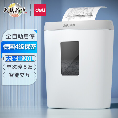 得力 deli 4級(jí)保密個(gè)人家用碎紙機(jī)(單次5張 20L 持續(xù)5分鐘 可碎卡)33186W 白