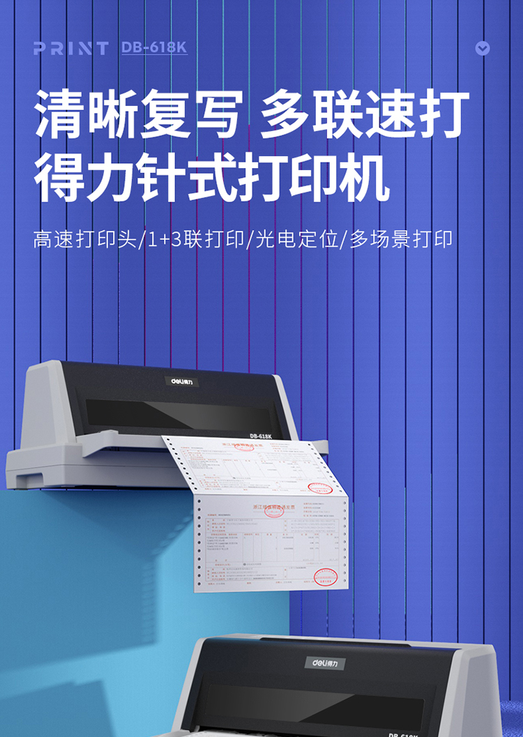 得力(deli)DB-618K 1+3聯(lián)針式打印機 營改增稅控發(fā)票打印機 票據(jù)電子面單快遞發(fā)貨出庫辦公打印機(82列)