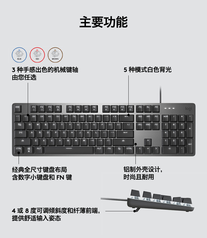 AOC GK410+MS100機(jī)械鍵盤(pán)鼠標(biāo)套裝 有線鍵鼠套裝 游戲辦公 電腦筆記本鍵盤(pán) 全尺寸 黑色 青軸¥109.00