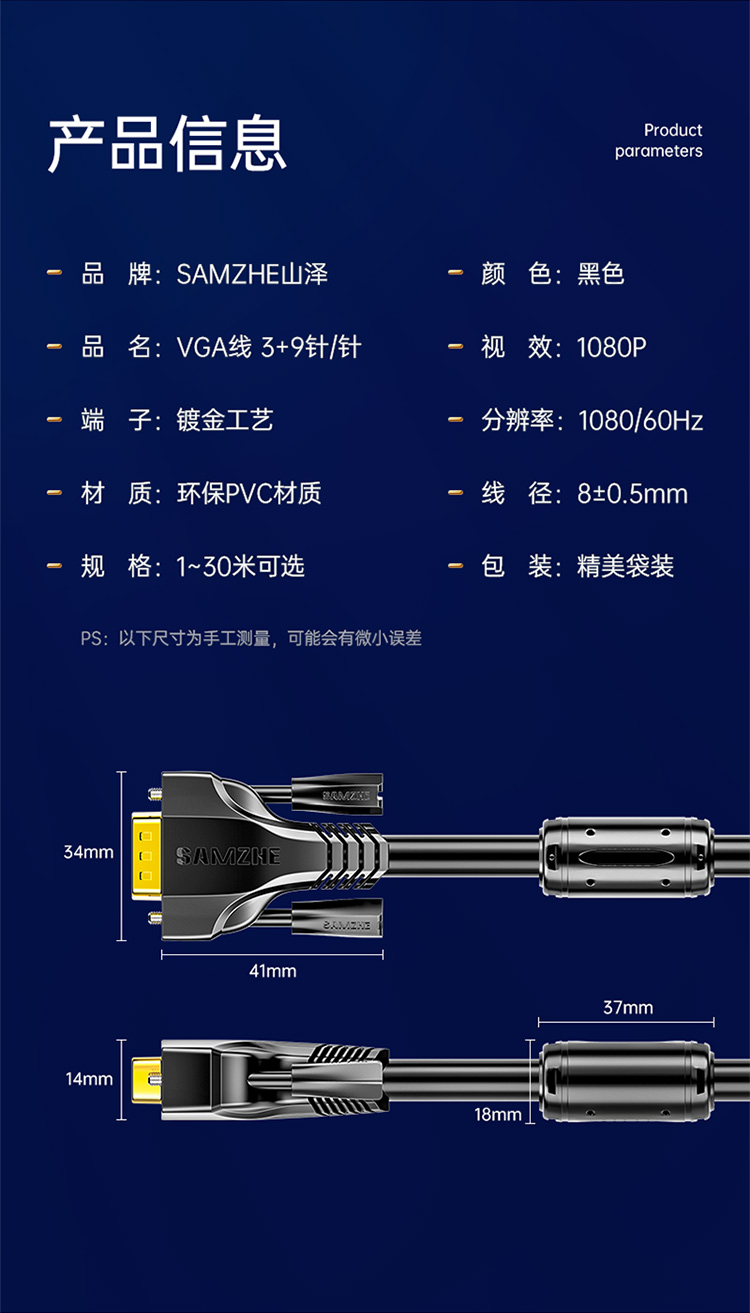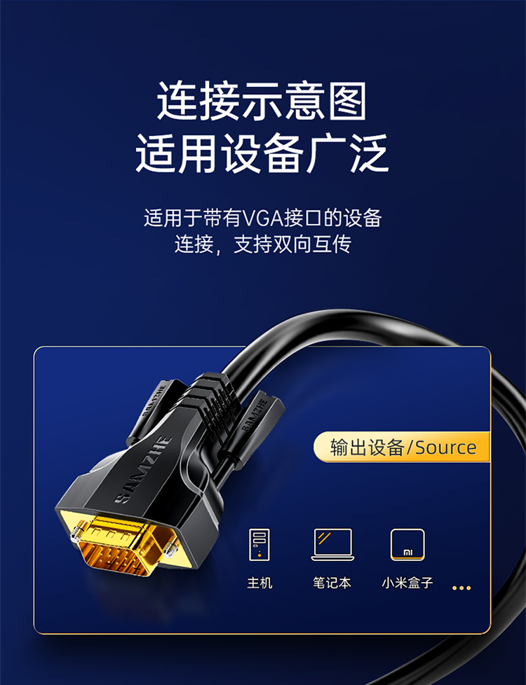 山澤 SAMZHE VGA線高清雙磁環(huán) vga3+9線芯針/針工程鍍金版 電腦投影儀顯示器視頻線數(shù)據(jù)信號線 1.5米 VM-9015