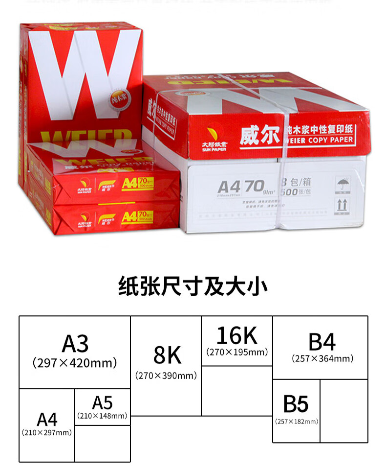 威爾/WELL A4復(fù)印紙 打印紙 威爾A4-70g-500張/8包/箱