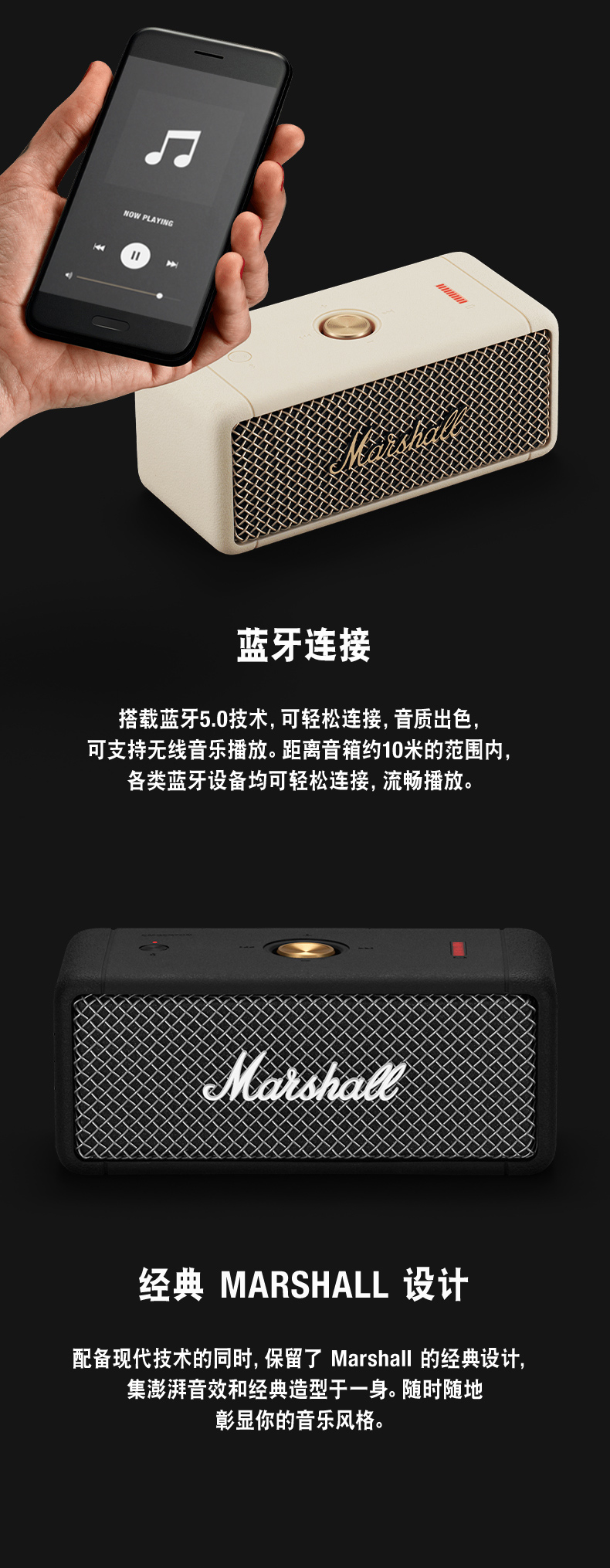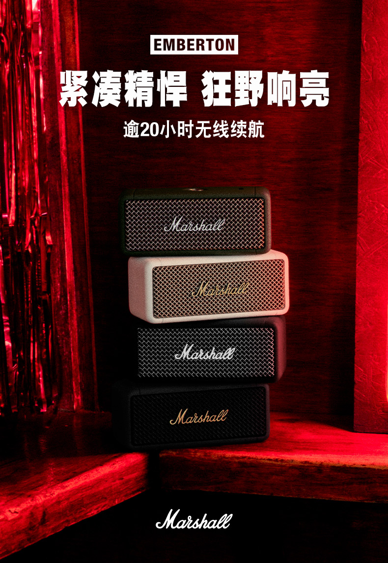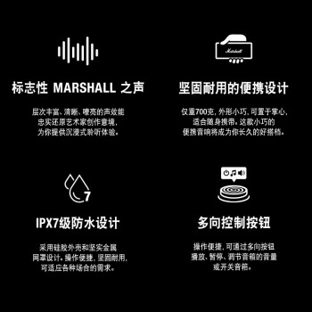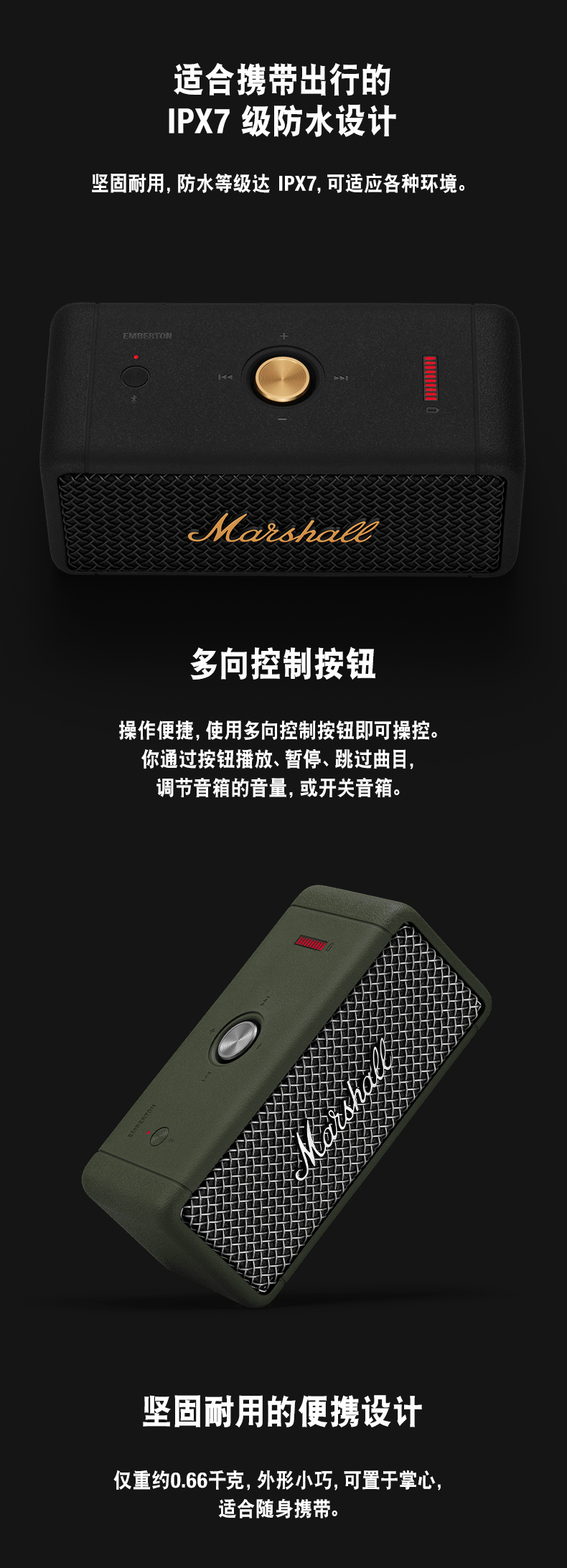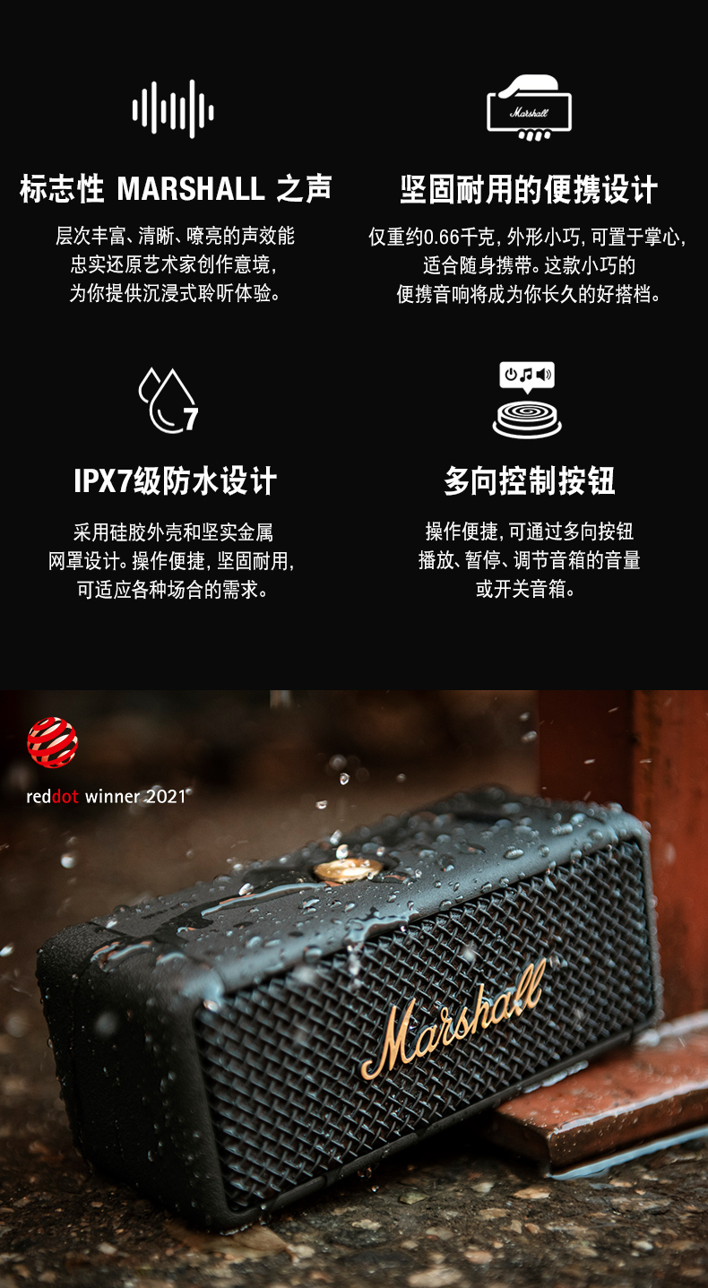 馬歇爾(Marshall)EMBERTON音箱便攜式無(wú)線藍(lán)牙家用戶外防水小音響 黑色