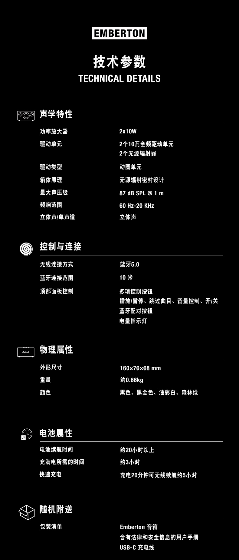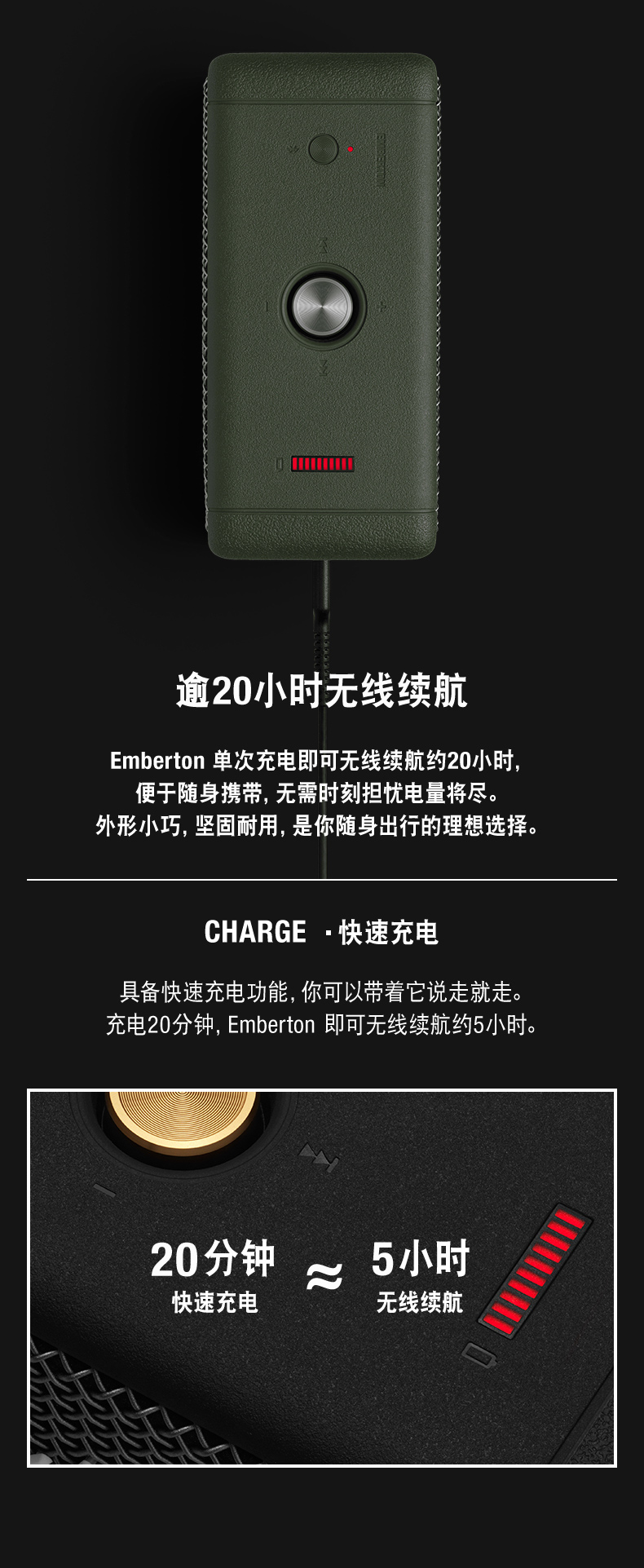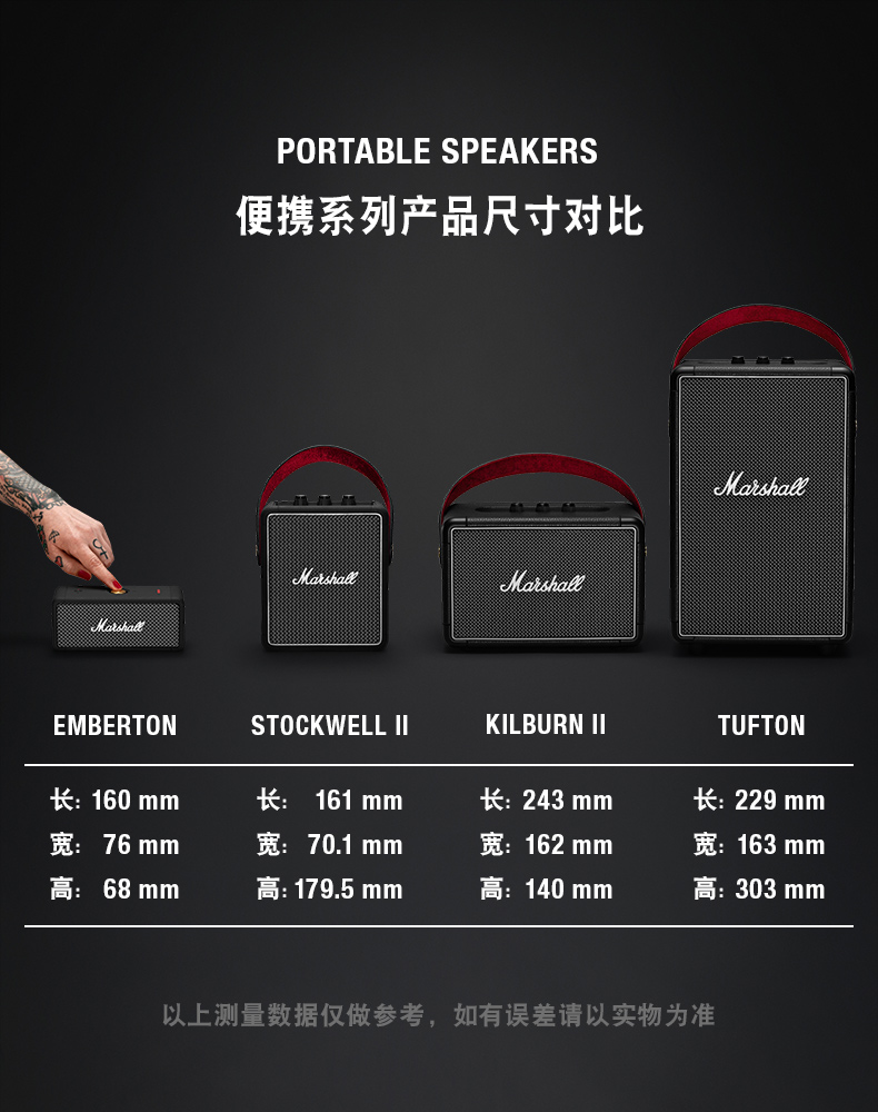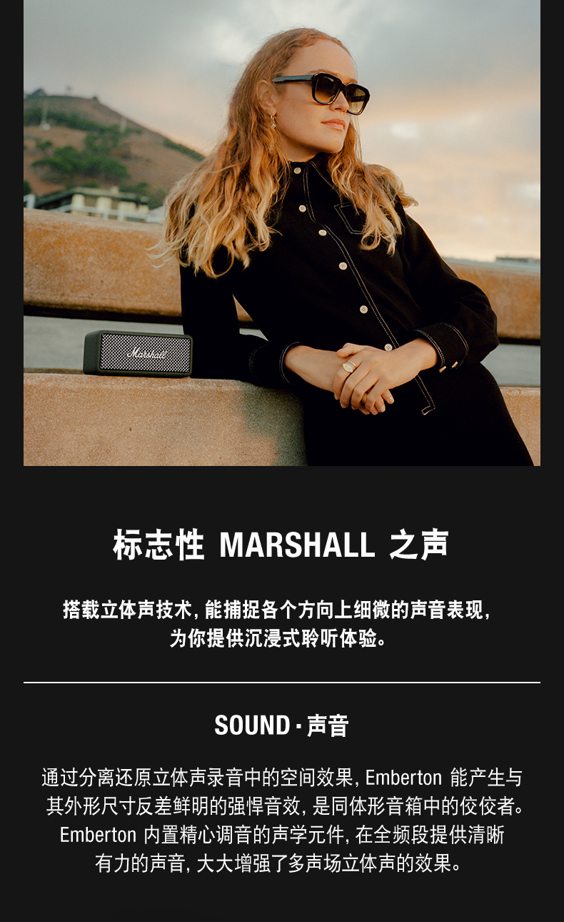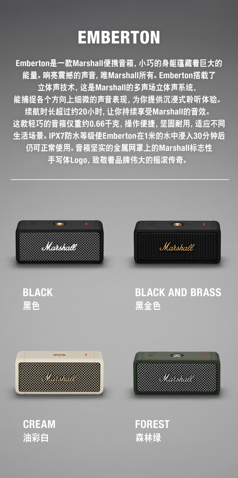 馬歇爾(Marshall)EMBERTON音箱便攜式無(wú)線藍(lán)牙家用戶外防水小音響 黑色