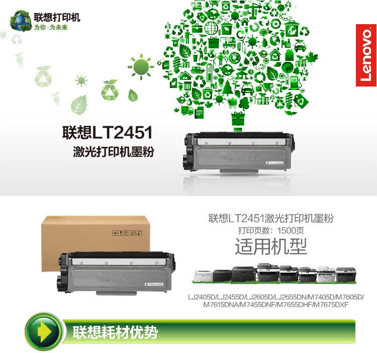 聯(lián)想/LENOVO LT2451H粉盒 原裝高容量粉盒適用于M7400PRO 7605D打印機 約2600頁