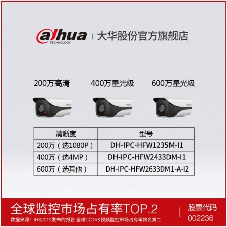 大華200萬高清紅外監(jiān)控攝像頭400萬600萬數(shù)字夜視網(wǎng)絡(luò)攝像機1235M